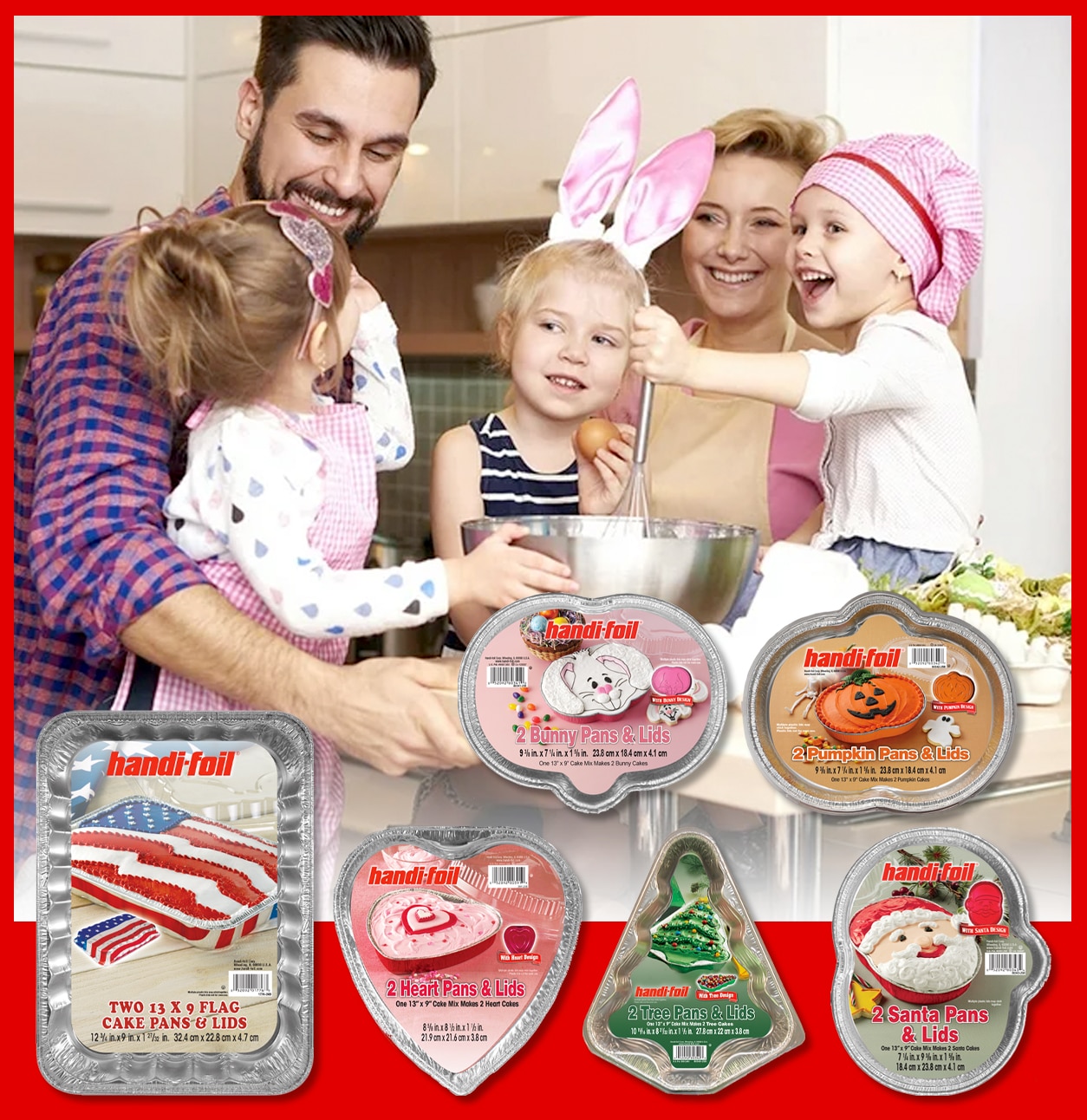 Pans for any occasions with no cleanup. Your choice of Santa, Pumpkin, Easter Bunny, Snowman or Flag pan. Clear plastic snap on Dome Lids makes easy to display and convenient to travel.
